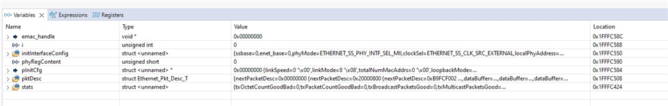 phyRegContent= Ethernet_readPHYRegister (EMAC_BASE、0x1);将允许您读取 BMSR 寄存器。