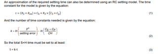 我计划将 RC 值减少到200欧姆和430 pF、S+H 时间约为540ns、这看起来很合理...
