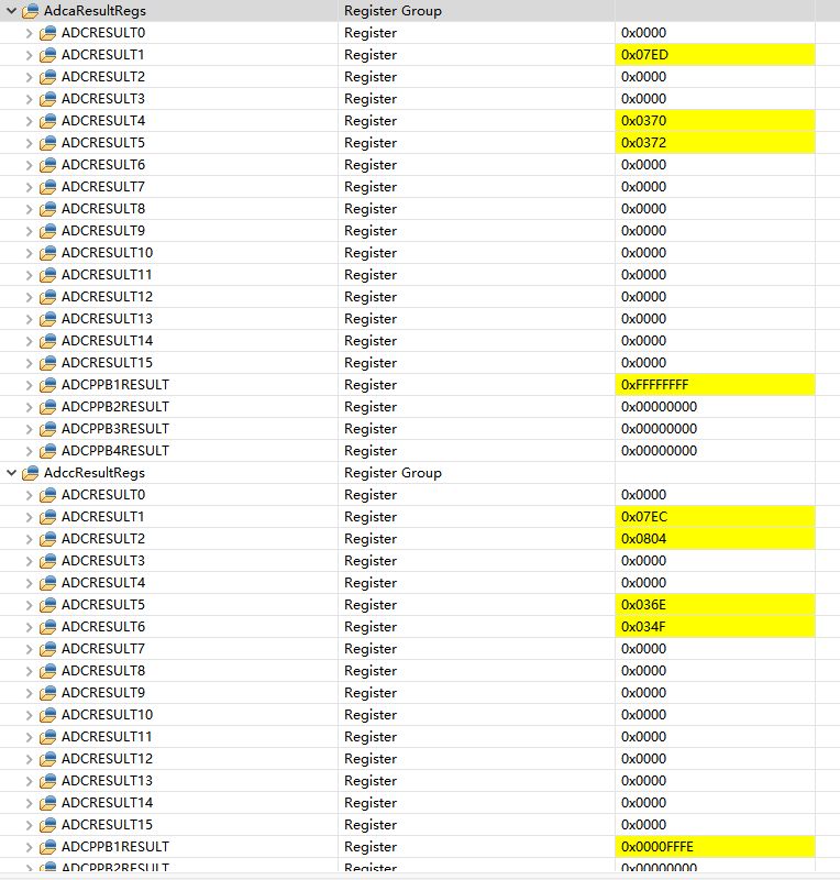 • 例如、ADCC SOC 3结果寄存器为:AdccResultsRegs。 ADCRESULT3