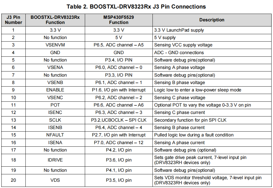 查看您的设置、应该移除绿色跳线- BOOSTXL-DRV8323RS J4-4和 J4-18之间的连接用于启用 SPI 控制。 对于-rh 版本、这是不必要的。