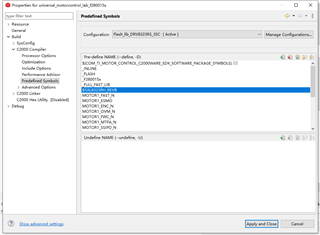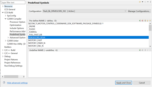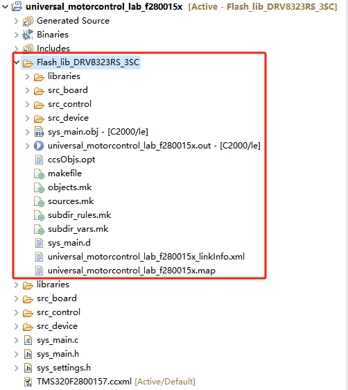 Johnny、"Flash_lib_DRV8323RS_3Sc"文件夹中的文件与名为"Flash_lib_DRV8323RS_3Sc"的构建配置相关。 根据您的屏幕截图、您已修改构建配置以引用-rh 器件。 基于此、该文件夹应与-rh 器件相关。