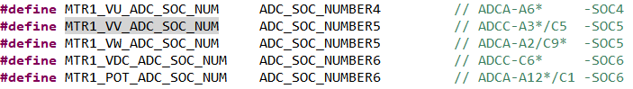 第二、  此外、对于调试、我无法从提供的图像中辨别与每个 ADC 通道关联的 SOC #是什么。 该映射可在 hal.h 文件中的以下#define 值中找到: