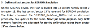 在本文档(Simulink–(F2837x)的闪存 EEPROM 仿真)中、提到了扇区13保留用于 EEPROM 仿真。 但是、数据表中未提及阻止将扇区12用于 EEPROM 仿真的限制。