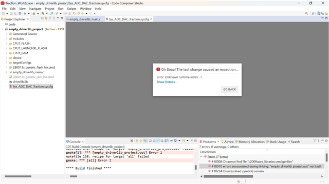 错误#10010:链接过程中遇到错误;未生成"empty_driverlib_project.out"
