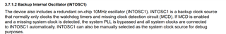 您的理解是正确的。 如果启用了 MCD 并且检测到缺少时钟、则绕过 PLL、所有系统时钟连接到 INTOSC1 完成 .
