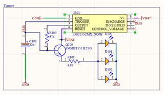 这就是我看到的。 我还尝试通过移除晶体管并将 R101增大到16 Ω 来直接从 TRIG 引脚馈入 LED、从而避免0.7VBE。 但在这种情况下、我看不到任何生成的信号。 您是否弄清楚通过3V 电压轨使用此系统的任何方法?