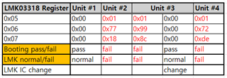 正常运行的 IC 的0x05 ~ 0x07寄存器值为0x00。 (单元#1和单元3 -更改了 LMK IC 后)
