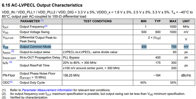 - 我将一些组配置为交流 LVPECL 3.3V。 数据表建议将交流耦合连接到接收器。 我可以将作为直流的输出耦合到接收器吗? 接收器的数据表显示、接收器可以作为交流或直流耦合