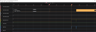 您可以看出、我在每个间隔期间手动向器件发出多个 DONE 脉冲(紫色波形)、但器件绝不会发出复位信号(即 RSTN 引脚从不会拉低、示波器上的蓝色波形)、并且唤醒信号(绿色波形)在每个间隔结束时拉高。