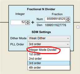 我正在测试 LMK05318BEVM 以生成时钟。 芯片在 APLL 模式下运行、输入由信号发生器 SDG6022X 生成(我将 J9更改为短接引脚2-3、以使用外部 XO 基准、其他插孔保持在默认位置)。 我尝试生成高质量、高精度且稳定的10MHz 输出。 不过、我发现当输入信号恰好位于40MHz、60MHz、80MHz 时、输出频率稳定性会显著下降。 您可以在下面看到 Allan 偏差图、在80MHz 输入端、有很多粗糙的频率噪声、而在80.2846MHz 输入端(只是任意值)具有平滑且稳定的频率。