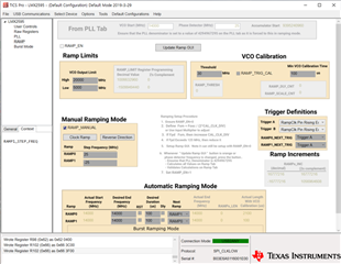 RAMP0:25MHz -> RAMP1:-25MHz ->已点击"Update Ramp GUI"->已选中"RAMP_EN"->已点击"Clock Ramp"