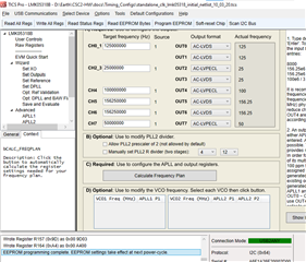GUI 在地址检测从器件  0x64  使用已启用向后兼容性的 LMK05318B 曲线时。 我做了一个  写入所有寄存器  运行、并且 GUI 确认 EEPROM 编程已完成。