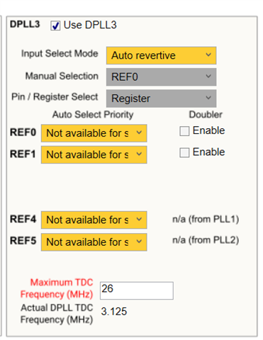 当我们在下电上电时读取寄存器时发现 REF0 和 REF1 的自动选择优先级的 DPLL3 设置未被存储并被复位。