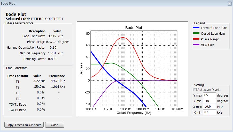 我使用时钟设计工具模拟LMK0.4906万。 我想确认回路滤波器1和2的抖动峰值。