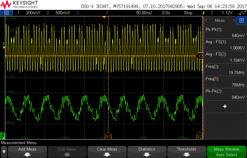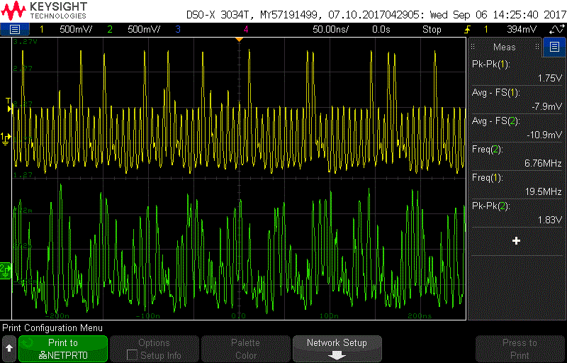 所以CLKIN0路径上一定有一些东西,示波器在从属LMK的CLKIN0 PIN上会有一些20mVpp的噪音,不应该是一个问题。