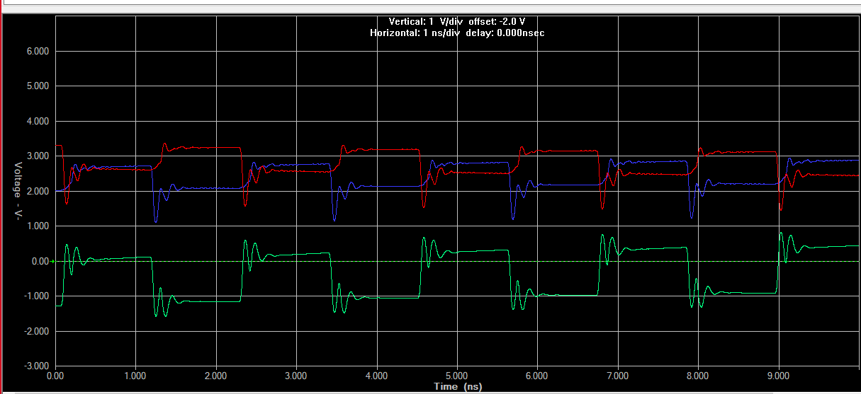 我们使用的是 lmx2594。我们使用使用 Hyperlynx 的 ibis 模型仿真 lmx2594。RFCLK OUT 的输出波形不像往常一样。 我们怀疑时钟的振铃和单调性过大,但在模拟100密耳传输线的线路中进行了同样的振铃。 我们放置了100欧姆的差分端接。 我们需要您的建议。