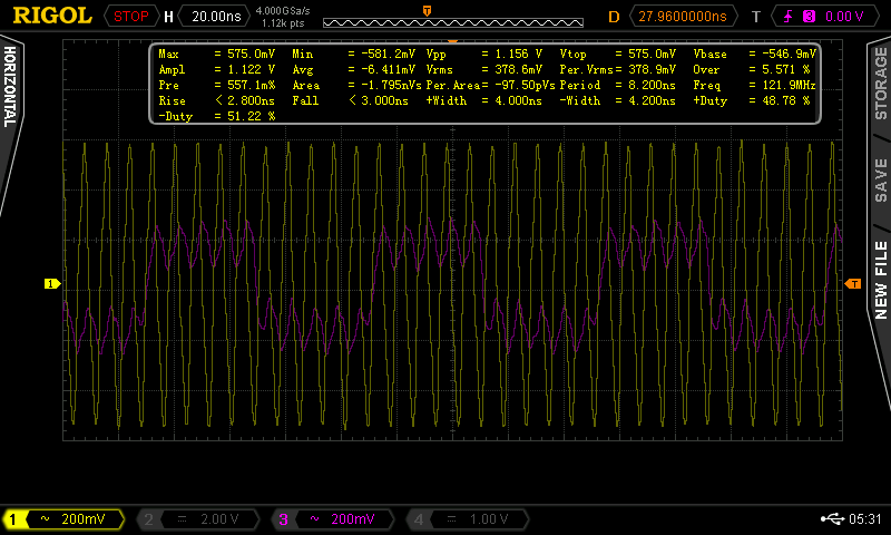 这个线程上的人显示了使用 LMK04832的市售电路板的原理图;我使用的是同一电路板、但显然是更新版本、在 OSCin_N 和接地之间添加了0.1uF 电容器)。 我也无法使 PLL1锁定在双环路模式、 并已确认只有 PLL1未锁定(PLL2锁定到 PLL1的输出、即使 PLL1未锁定、因为由于 VCXO 的调谐范围有限、它仍接近预期频率)。 我还通过尝试环路极性并观察示波器上的 VCXO 调谐电压来确认这一点。 正如预期的那样、根据环路极性、它的轨输出为3.3V 或0.0V。 您还有其他提示来让 PLL1锁定吗? 我使用的是450uA CP 增益、但由于 PLL1环路滤波器的环路带宽如此低(它具有0.1uF + 0.68uF 环路滤波电容器)、我不认为这可能是稳定性/相位裕度问题。 我已附上 TCS 文件的当前草稿。