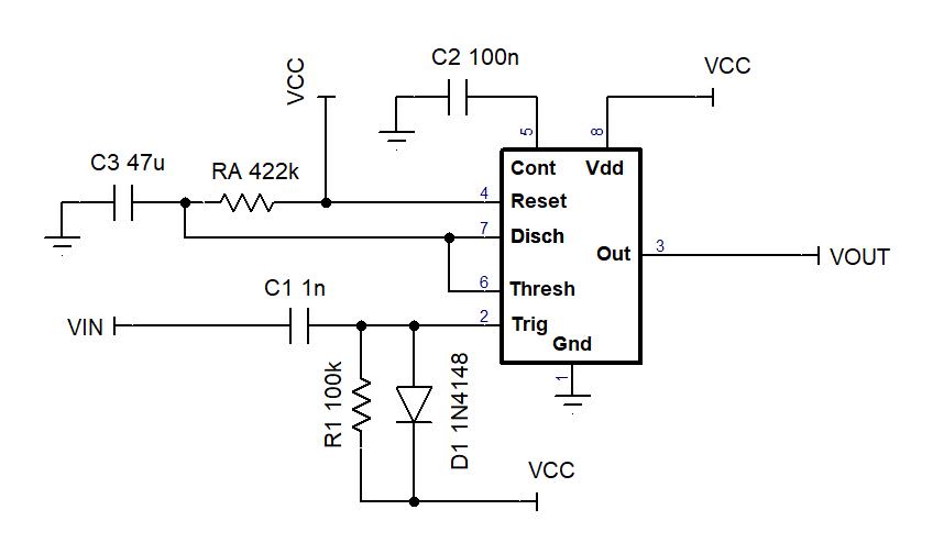 如果使用555、则触发引脚只能为正常高电平、异常高电平、异常低电平、D 触发器可以为正常低电平。