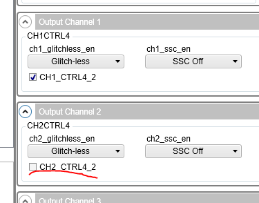 我通过向 CH2_fod_rst 位 (寄存器0x2D 位13)写入0 > 1 > 0来复位通道2 FOD、 但输出时钟仍然不正确。