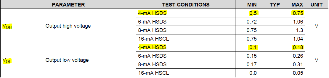 考虑到 Vin 范围为0~2.4V 且 Vth 典型值为+100mV、HSDS 4mA 可以满足该要求。