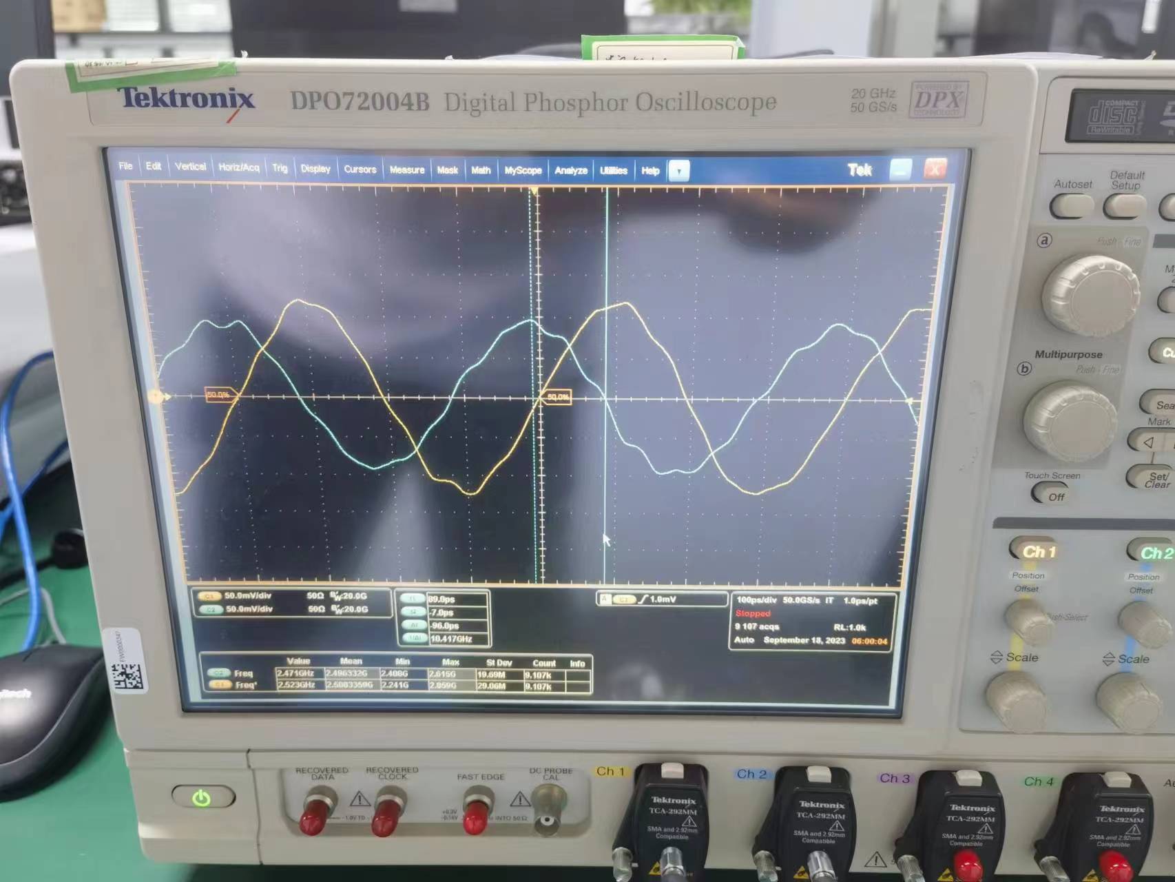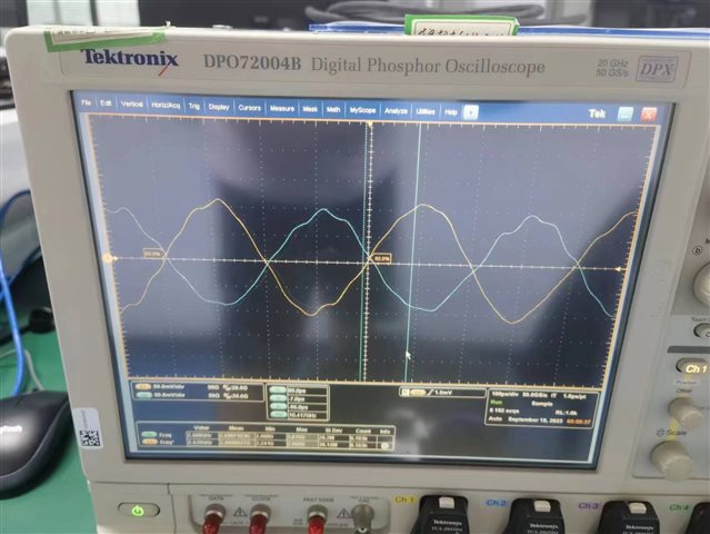 clkin1输入是20 MHz 时钟、而 oscin 输入是100 MHz 时钟。 Vco0为2500 MHz。 Dclkout0为2500 MHz、dclkout2为2500 MHz。 使用示波器测试这两个时钟的延迟。
