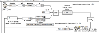 VCO 校准:这些寄存器设置应与 FPD 和 fosc 匹配。 您可以将鼠标悬停在配置框上以查看左侧窗口中的说明。