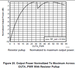 1) ADC16DV160允许的最大时钟输入振幅仅为1.4VPP (6.9 dBm),但 根据数据表信息,电阻上拉的 LMX2594标称输出功率级别@ OUTx_PWR = 50应为(8-9 dBm)。 我们是否可以 通过更改 OUTx_PWR 寄存器来更改 LMX2594的输出功率 等级?如果可能、提供寄存器值与功率等级比较数据?
