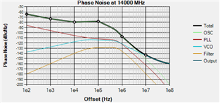 我已使用安装在评估板上的默认环路滤波器对 PLLatinum sim 进行了配置、并验证了仿真的相位噪声是否与评估说明中应该获得的相位噪声相匹配:
