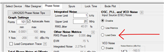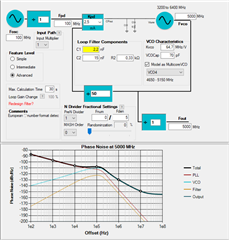 首先、关于输出相位噪声、我在输出频率设置为5000 MHz 的情况下进行了测量(默认硬件配置、使用参考 PRO 板的100 MHz)。