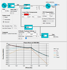 在另一种配置(启用参考倍频器的10 MHz 参考)中、对于设置为4960 MHz 的输出频率、仿真给出: