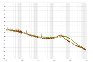 3dBm 时基准电平的绿色曲线和+7dBm 时基准电平的棕色曲线。