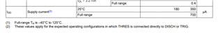 通过查看 TLC555数据表、可以看到满量程下的 Icc 为700uA。 我是否可以将其视为 Vcc 工作时的电源电流? (@μ A、使用5V)