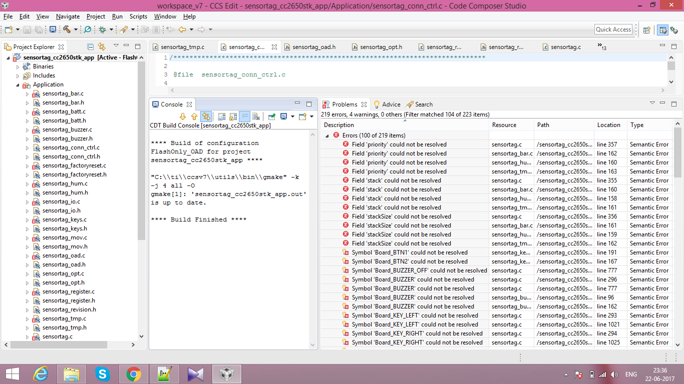 我在编译和构建CC2650传感器标签的代码时遇到了问题,