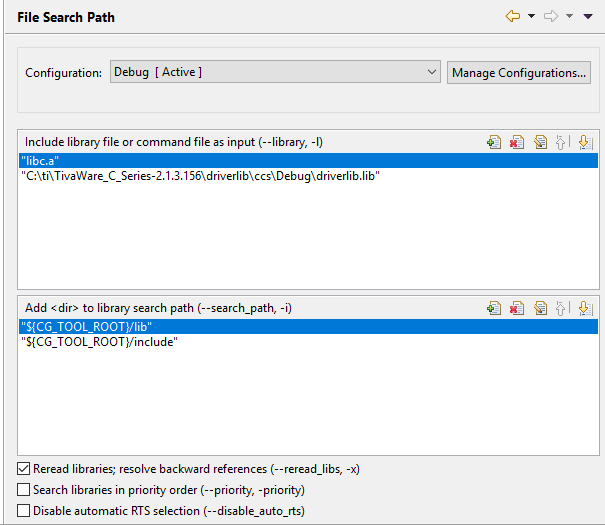 我在尝试在CCS中运行此项目时遇到了多个问题。 第一个问题是无法打开inc/hw_adc.h等文件。 我认为这个问题是因为我还没有在文件搜索路径中包括driverlib.lib,但包括它也不能解决问题。 相反,删除ex-tm4c123gxl > orbit_demo_TIVA_c_series > orbit Basic Demo TIVA C Series > Source中的文件夹Peripheral Library C Files (外设库C文件),修复了我遇到的大多数错误。 但是,我仍然收到以下错误: