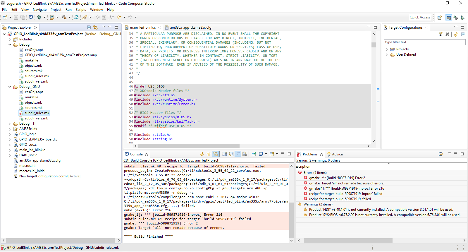 当 xdctools 运行时、编译失败。 XDC 用于构建 SYS/BIOS 和 NDK 等软件组件。 这些是处理器 SDK 的一部分。 我看到"Problems"视图中有有关这些组件版本的警告。 因此、我认为该项目的设计目的是使用与计算机上安装的处理器 SDK 不同的版本。 我将在 Sitara 团队中参与、因为他们应该能够确定需要哪种版本的 Processor SDK。