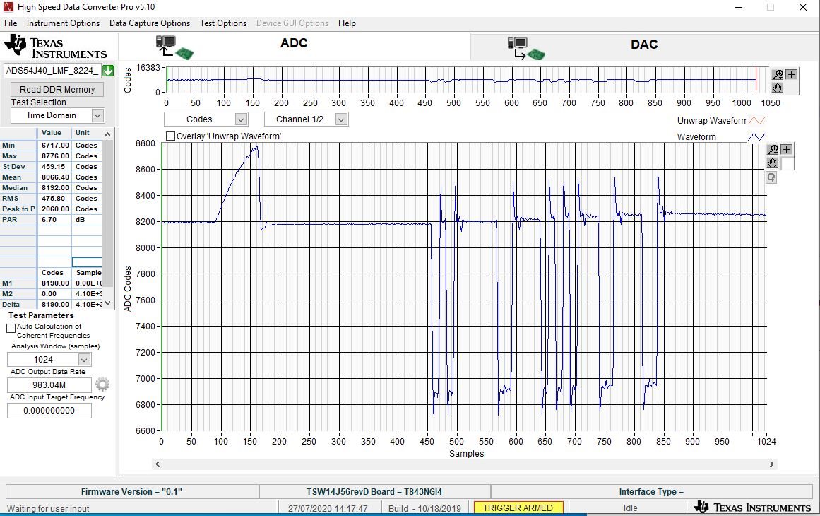在我们的测试中、如果我们提供了要采集的16384个样本、看起来就像在工作。 尝试较低的值: 8192低至1024 (2的1024次幂)、我们仍然得到信号16384距离的捕捉。