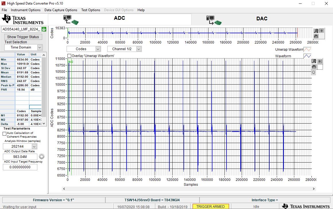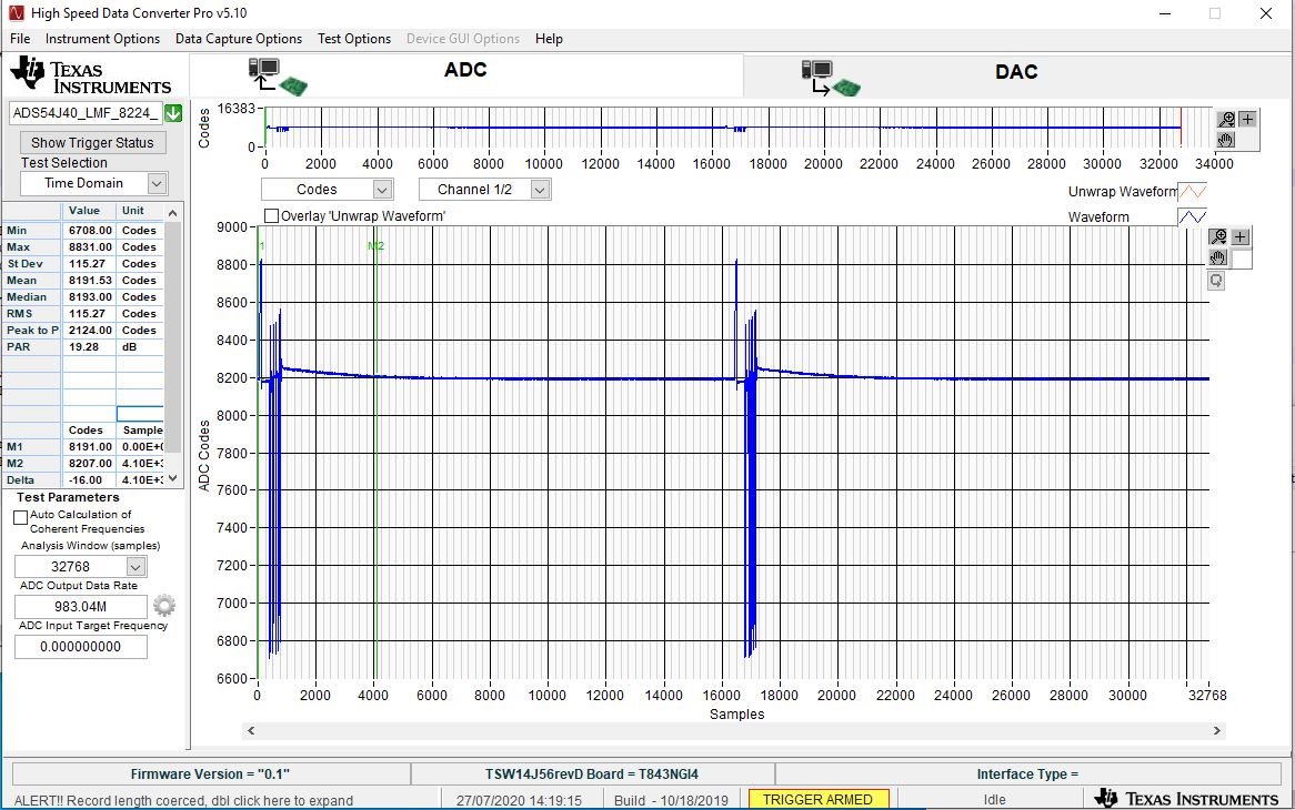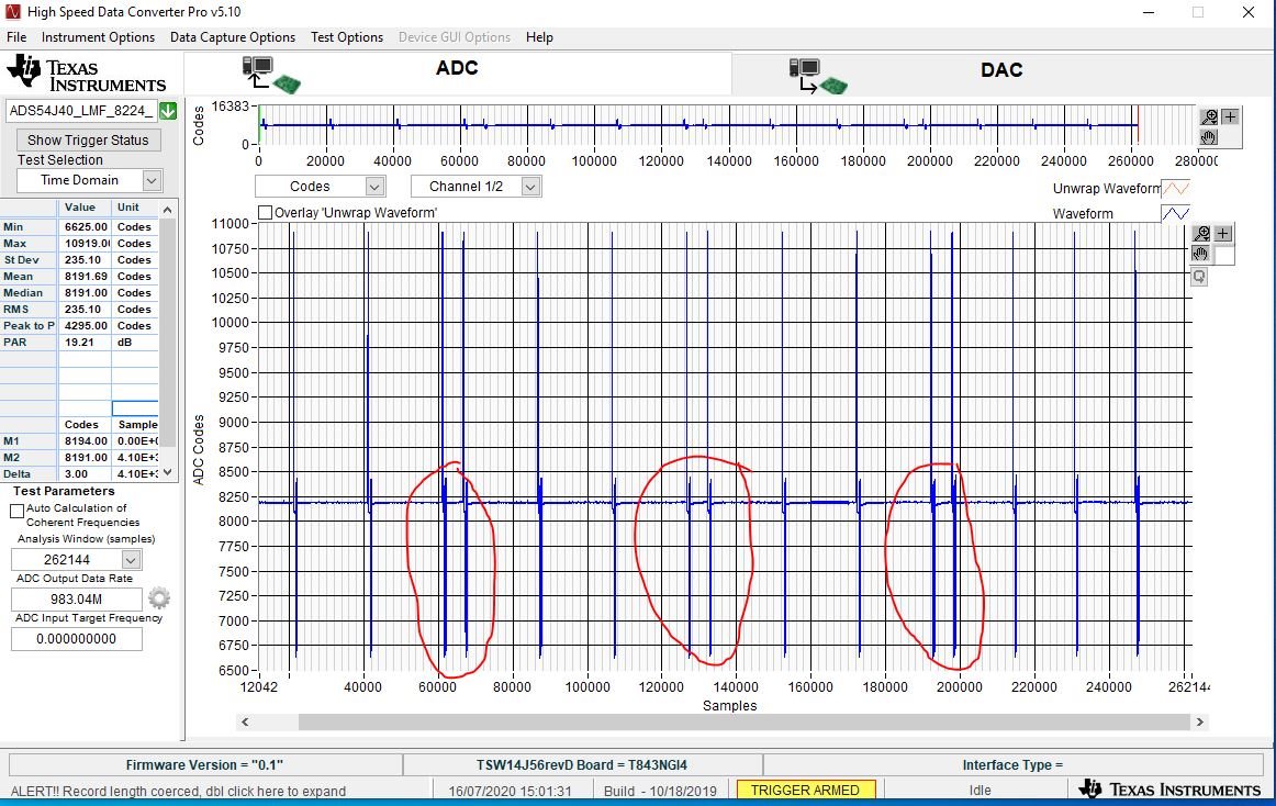 ADC 捕获脉冲之间计算的时间周期= 19.714355us (根据客户的输入、采样频率= 983.04MHz、连续脉冲之间的样本数= 19380)