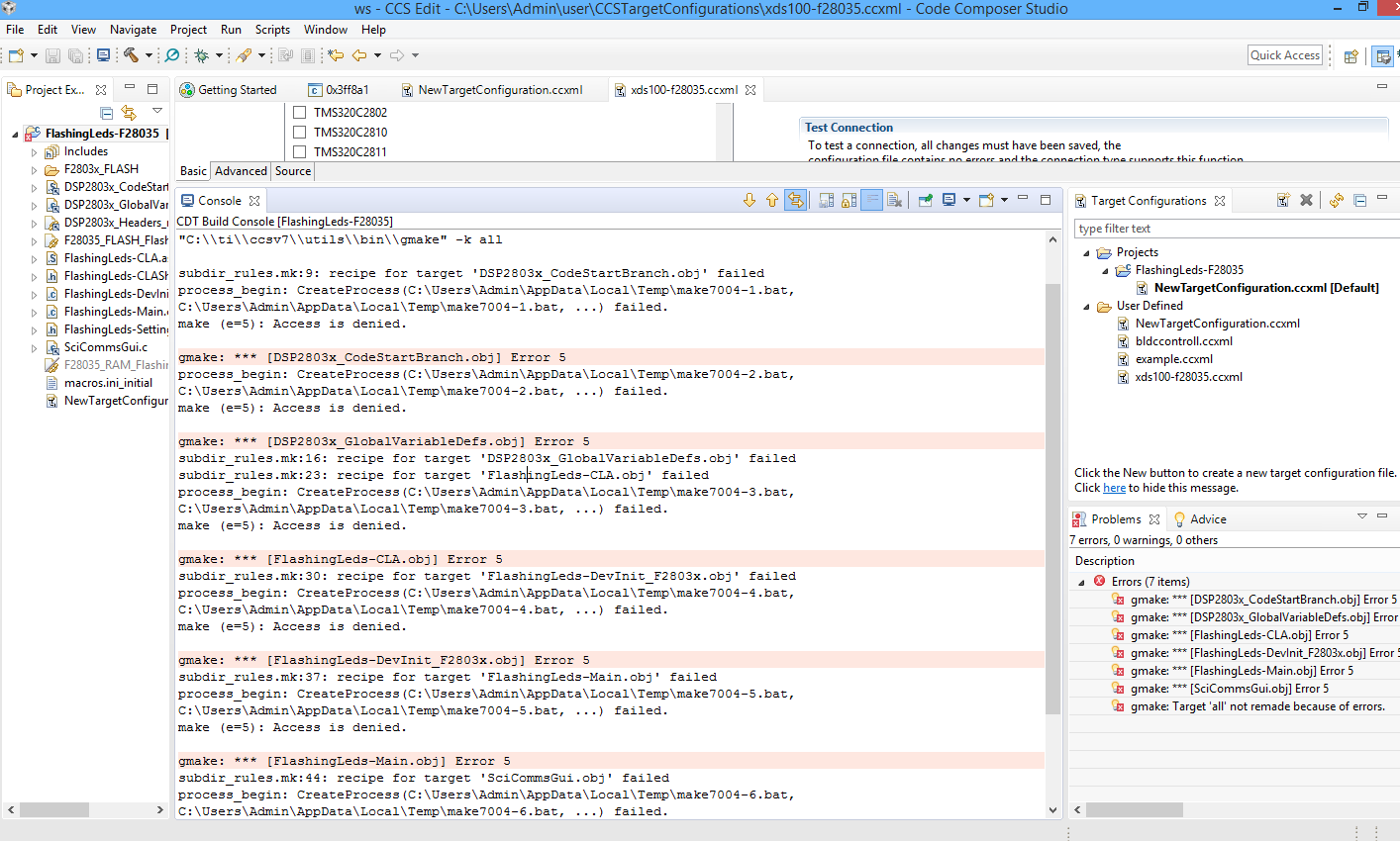如果 您在 FlashingLets-F28035_v1.0项目中遇到不同的错误、请尝试再次将项目导入到新的工作区中。 此外、请确保您使用的是最新可用的 controlSUITE 版本。 我还建议尝试 \device_support\f2803x 目录下的示例。 如果这些问题类似,则可能是您的环境中存在设置或安装问题。