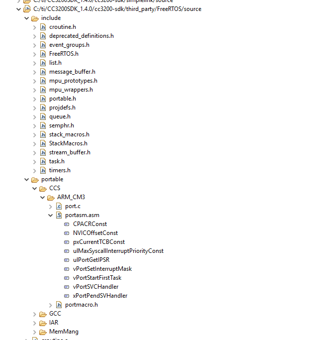C:\ti\CC3200SDK_1.4.0\cc3200-sdk\third_party\freertos\source\portable\ccs\arm_cm3\port.c 中没有 void xPortPendSVHandler (void)函数