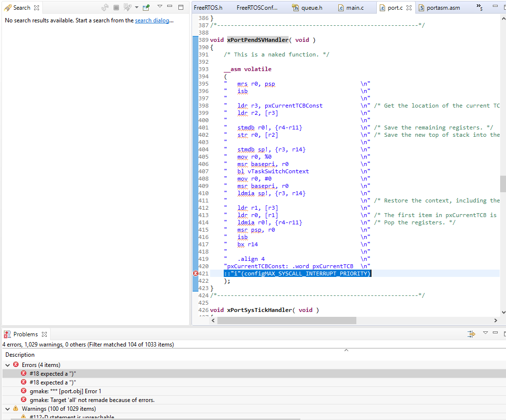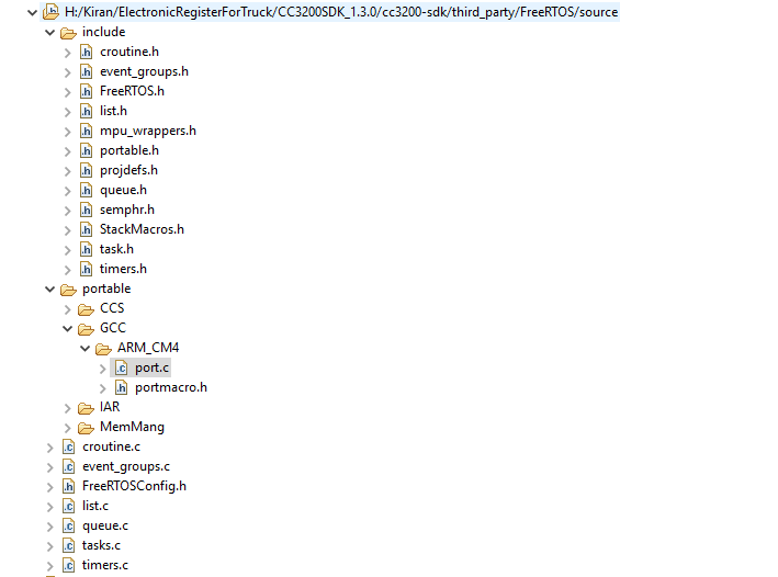 我从 RTOS 源文件中将4个文件链接到我的项目、即.port.c、que.c timer.c、task.c