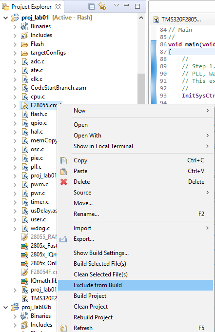 但最糟糕的是、如果我更改了"Properties"/"Project"中的任何内容、例如设置正确的"Variant"、并且正确的器件配置偏离正轨、那么我就无法再使用我需要闪存的 F28054F.cmd 文件构建、 即使我在那里设置了配置、在我关闭它后、配置也会发生变化、我无法正确构建、我无法恢复、需要卸载、删除等操作才能获得干净的安装。 使用手动项目配置、有些事情可以做、但会很快地下降管道。 我在这个领域有很多经验,我从来没有过这种基于 Eclipse 的 IDE 的经验。这是不可用的,试图弄清楚如何使它正常工作已经花费了很多时间。