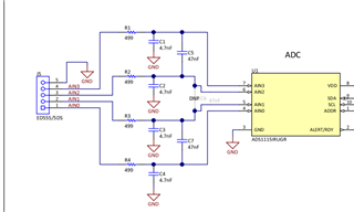 ADC 和传感器将放置在子 PCB 上、该子 PCB 将与 I²C Ω 和5V 连接。 如果需要、我还将为 μ I²C 添加一个3.3V LDO。 VCC、GND 和 I²C Ω 信号将通过共模扼流圈、以更大限度地减少噪声干扰。