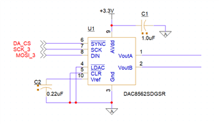 我们有一个正在开发中的新产品、使 DAC8562正常工作会出现一些问题。 这是数据表: https://www.ti.com/lit/ds/symlink/dac8562.pdf?HQS=dis-dk-null-digikeymode-dsf-pf-null-wwe&ts = 1740129067155&ref_url=https%253A%252F%252Fwww.ti.com%252Fgeneral%252Fdocs%252Fsuppproductinfo.tsp%253FdistId%253D10%2526gotoUrl%253Dhttps%253A%252F%252Fwww.ti.com%252Flit%252Fgpn%252Fdac8562