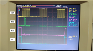 我注意到您的 MISO 信号随 SSL 信号发生了变化、您能否确认 SSL 是否是 ADC 的/CS 线路? 我不知道该怎么回答。"