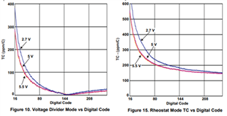 在图15中、变阻器模式下、同样在0xFFh 处、TC 趋于150ppm (或多或少)