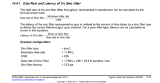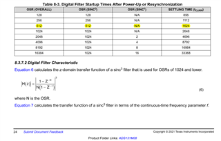 大家好、我有一个关于 ADS131M08的稳定时间的问题。 到目前为止、我已在 DSP TMS320F28379D 上使用了 sinc 滤波器。 在 DSP 的 TRM 中、您可以找到两个基本公式。
