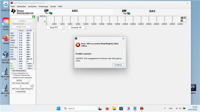 我已尝试从官方网站安装不同版本的 LabVIEW 运行时,但我无法解决此错误。 :(但如果我按"继续",软件会按预期执行接下来的步骤。 TSW1400可以成功识别、程序意识到没有固件、我可以在下拉菜单中找到 AFE5818固件、上传固件后、HMC-DAQ GUI 成功打开。 但是、我的 TSW1400上的非 LED0-LED7亮起、我将其解读为一个不良符号...: