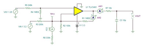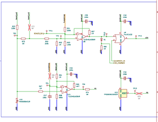 如果在仿真文件中将330k Ω 电阻置于 TP11位置 、如下所示、TP11的分压将从1.0V 更改为~1.24V、因为330k Ω 电阻接近电阻分压器中的电阻值、并且电阻网络还将具有由输入偏置电流和您使用的较大电阻值产生的额外误差。 请注意、我在仿真中使用了典型的参数值、因此变化的电压与您在电路中观察到的电压略有不同。 如果不符合预期、则需要在 SCALED_SC 和 ADC 输入(A3_P)之间使用一个缓冲器。