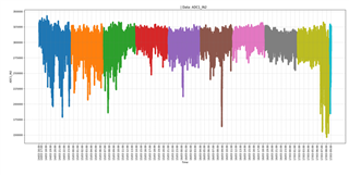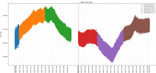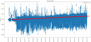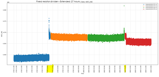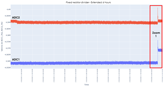 这是紫色区域的特写(持续时间约为4:30小时)。 在2小时内似乎有600个 ADC 级别的噪声和1000个级别的漂移: