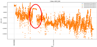 这是结果、并 放大了一个2分钟的窗口。 大约有100K ADC 电平的变化:
